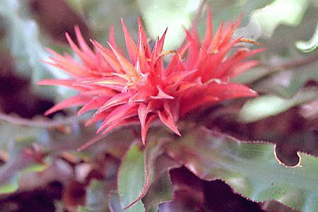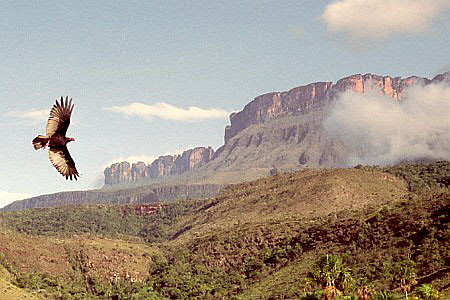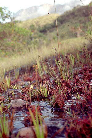 VenezuelaGuayana HighlandsAuyán-tepui bordering Brazil and Guyana is situated in an area which has several names: Gran Sabana, Guayana Highlands or more popular "The lost world". The latter name was used as the title of a book by the fiction writer Arhur Conan Doyle (of Sherlock Holmes fame), who was inspired in 1880 by the stories of one of the first explorers in this region, the botanist Im Thurn.The tepuis are the remains of a big sandstone plateau, eroded through the ages and relatively recently charted. With a surface of 600 square kilometer Auyán-tepui is one of the bigger and also more accessible tablemountains, starting from Canaima Tourist Camp one can reach it in a fast boat over darkbrown colored rivers in about five hours, after which a one hour walk is needed to reach Angel Falls with its free fall of 800 meter. On the tepuis and their steep walls grows a unique vegetation with many - even per mountain - endemic species. Among them many bromeliads, difficult to reach but one of them, Navia tentaculata, is easily spottable when reaching Angel Falls on rocks in the Churun-river and also on the trees nearby. |