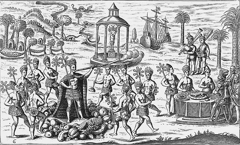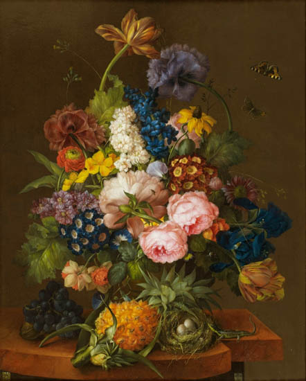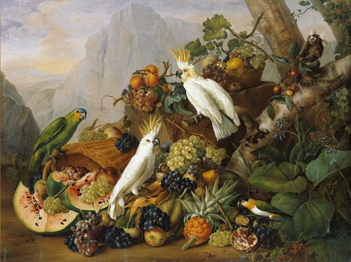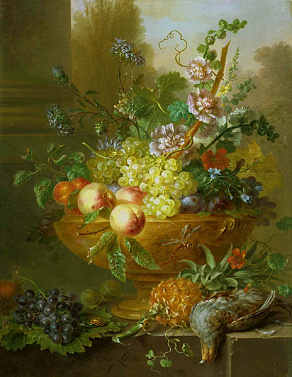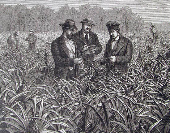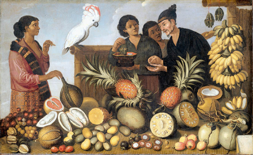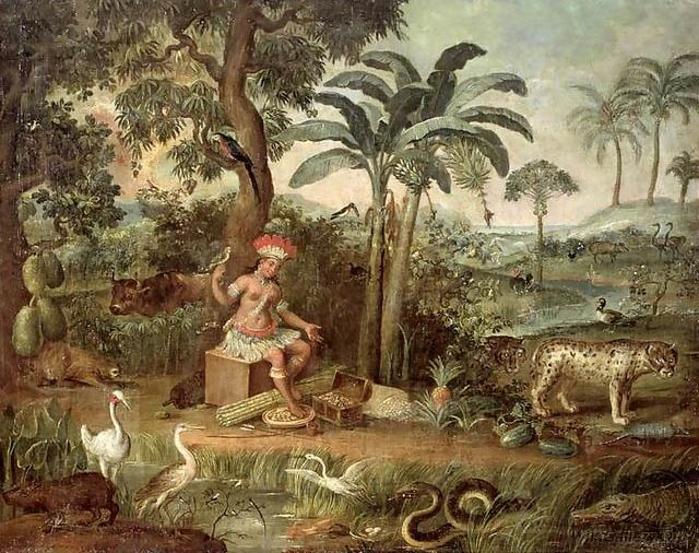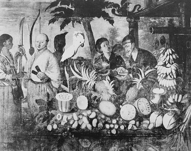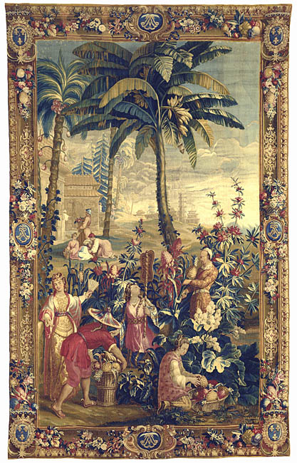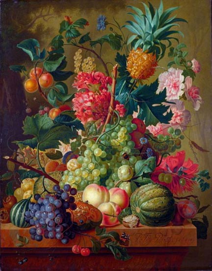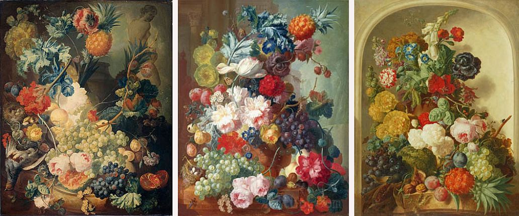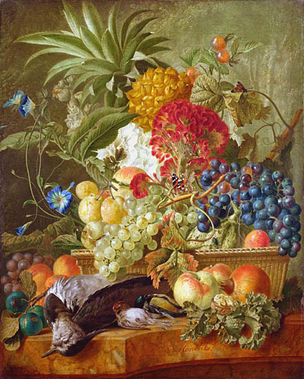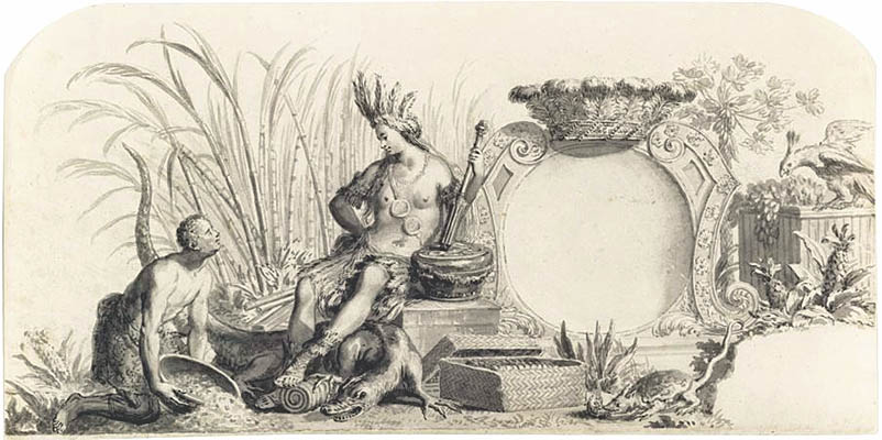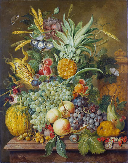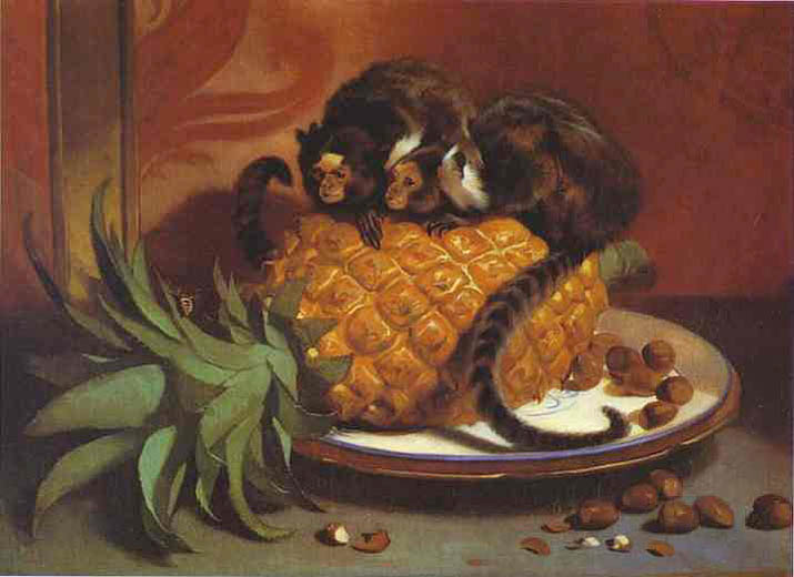 The pineapple figured in paintings and drawings etc.(search for the pineapple)1578 Jean de Léry: Histoire d'un voyage faict en la terre du Brésil, Tupinambá indians (l., wood engraving) related to (l.): undated from the Sloane volume of watercolours, associated with John White c.1540-1593 (r., British Museum) 1596 Jan Huygen van Linschoten: Itinerario, voyage ofte schipvaert van Jan Huygen van Linschoten naer Oost ofte Portugaels Indien (engraving by Johannis Baptista van Doetecum) 1621 Honorius Philiponus: Nova typis transacta navigatio, 'Carib Indians greet Europeans' (engraving) 1640 Albert Eckhout: Still life (l., oil on canvas, Nationalmuseet Copenhagen) c.1651-1663 Andries Beeckman: 'Still life with exotic fruit and a white cockatoo' (r., oil on canvas) 1648 Willem Piso: Historia Naturalis Brasiliae (l.) and 1658 Willem Piso: De Indiae utriusque re naturali et medica (r.) 1665 Johan Nieuhof: Het gezantschap der Neerlandtsche Oost-Indischen Compagnie aan den grooten Tartarischen Cham, den tegenwoordigen keizer van China - Algemeene beschryving van 't Ryk Sina following page 148 (engraving), also on tin-glazed earthenware Delft tile, 43,5 x 48 cm. at Dyrham Park, UK (National Trust) 1629 John Parkinson: Paradisi in Sole Paradisus Terrestris, titleplate by Christopher Switzer (l., engraving) c.1660-1670 anonymous: mural in castle Schwedt a.d. Oder, lost in WW2 (see also painting below) 1666 anonymous: 'Oost-Indisch marktstalletje' (oil on canvas, Rijksmuseum) 1652, 1650 Frans Post: details of paintings (oil on canvas, Rijksmuseum Amsterdam (l.) and Historisches Museum Frankfurt (r.)) 1662 Frans Post: 'Gezicht op Olinda' (oil on canvas, Rijksmuseum) 1667 Athanasius Kircher: China Monumentis Illustrata, page 188 (l.) and page 189 (r.) 1666 Sir Christopher Wren: design of St. Paul's Cathedral with elongated pineapple, not executed (l., All Souls College, Oxford) c.1685-1710: pineapple on the towers of present St. Paul's Cathedral, London (m. and r.) c.1675 anonymous: 'John Rose, the royal gardener, presenting a pineapple to king Charles II' (oil on canvas) 1668 Olfert Dapper: Naukeurige beschrijvinge der Afrikaensche gewesten, page 348 (l.) 1682 Simon de Vries: Curieuse aenmerckingen der bysonderste Oost- en Westindische verwonderens-waerdige dingen, plate after page 130 (r.) 1682 Johan Nieuhof: Joan Nieuhofs gedenkwaerdige zee en lantreize door de voornaemste landschappen van West en Oostindien, titleplate (l.) and plate after page 238 of part 2 (r.) 1689-1690 after Albert Eckhout: detail of 'L'Éléphant' from 'Tenture des Indes', Manifacture des Gobelins (l., tapistry, Mobilier National Paris) 1692-1693 François Desportes after Albert Eckhout: drawings for tapistries (r., oil on paper, Cité de la Céramique, Sèvres) c.1690 Jan Weenix: 'Agnes Block, Sybrand de Flines and two children at the country seat Vijverhof' (oil on canvas, Amsterdam Museum) c.1690-1699 Jan Weenix: 'Portrait of a young woman and a little girl' (l., oil on canvas) 17th century anonymous: gilded silver cup, 22,5 x 6,5 cm. (r., Musée des Beaux-Arts de Lille) 1690 anonymous (English school): 'Farming large pineapples', from a description of embassies to China (l., engraving) 1696 Jürgen Andersen: Orientalische Reise-Beschreibung, page 82 (r., engraving) 1692 Bartholomeus Brandon: titleplate of Hortus Regius Honselaerdicensis (l., vellum in drawing-book, Biblioteca Nazionale Centrale di Firenze) 1705 Georg Eberhard Rumphius: D'Amboinsche Rariteitenkamer vol.1, portrait by his son P.A. Rumphius, engraving by Jacobus de Later (r.) 1697 Jan Commelin: Horti Medici Amstelodamensis, vol.1 titleplate from several copies showing differences in coloring (copper engraving) c.1696 Philip Tideman: 'Allegory of America' (drawing on paper) c.1690-1705: 'La récolte des ananas' from 'L'Histoire de l'empereur de la Chine', Manifacture Beauvais (tapistry, J. Paul Getty Museum Los Angeles) 1719 Maria Sibylla Merian: Over de voortteeling en wonderbaerlyke veranderingen der Surinaemsche insecten, titleplate by Frederik Ottens (engraving). 1737 Alexander de Lavaux & J.G. de Lacroix: Chart of Suriname (print on silk, 186x215 cm, Rijksmuseum Amsterdam). 1721 Rudolf and Gerard Wetstein: Het Brittanische rijk in Amerika, translation of 1708 John Oldmixon: The British empire in America, added engraving by Jan Goeree (l.) 1742 Gaetano Monti: Jacobi Zanonii rariorum stirpium historia, edition of 1675 Giacomo Zanoni: Istoria Botanica (added engraving, r.) 1748 Jorge Juan & Antonio de Ulloa: Relación Histórica del viage a la América Meridional pt.1 book1 1732 Robert Furber: Twelve months of fruits - october, drawing by Pieter Casteels (l., engraving) 1742 Jan van Huysum: Still life (r., oil on copper, National Trust) c.1734-1783 Frans van der Mijn: 'Two parrots and some fruit' (l., oil on canvas) c.1745 Joseph Anton Glantschnig: Europa und Asien (r., oil on canvas, Mainfränkisches Museum Würzburg) 1750 after Peter Babel: Trade-card of Negri and Wetten, confectioners at the Pineapple, Berkeley Square, London (l., etching/engraving, paper, print by Ignatius Fougeron) 1754 : Draft of trade-card of Henry Scott, gardener, of Weybridge, Surrey (r., paper, print by Francis Vivares) 1740 Nicolaas Verkolje: 'David van Mollem at his estate Zijdebalen near Utrecht' (l., oil on wood) 1775-1799 anonymous (Dutch school): decoration on wall over door (r., oil on canvas) c.1774-1777 Jan van Os: Still life (oil on canvas) 1779 Gerard van Spaendonck: Still life (l., oil on canvas) 1795 Corneille van Spaendonck: Still life (r., oil on canvas) 1761 The pineapple at Dunmore Park (l., photo National Trust) 1775 after C.S. Blake: 'James Sibbald, gardener to Thomas Delaval' (r.) 1781 after Jean Michel Moreau le Jeune, engraving by Isidore Stanislas Helman: 'Le souper fin' (l., Musée Carnavalet, Paris) 1783 Charles Bretherton: 'Mrs. Weltje in her shop in Pall Mall' (r., engraving) 1763 Miguel Cabrera: Casta painting from Mexico (l., oil on canvas). c.1775-18