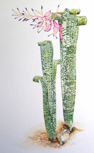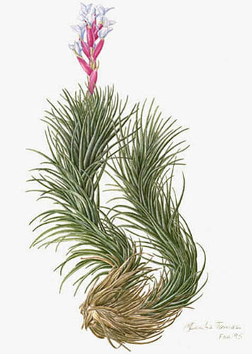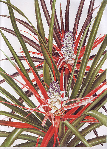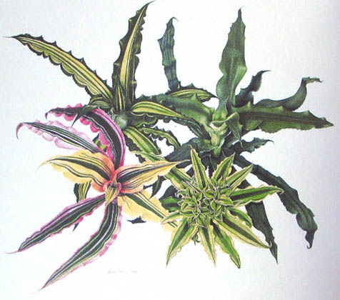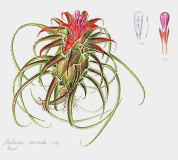 Botanical artists from the 20th centuryPresented here are some botanical paintings made since 1960. They are 'gathered' from different collections published in books (e.g. by Shirley Sherwood and Kew Gardens) or on the internet (e.g. Smithsonian Institution, artist web-sites). My aim is to give an idea of the illustrations of bromeliads made by the many botanical artists of recent and current date. |